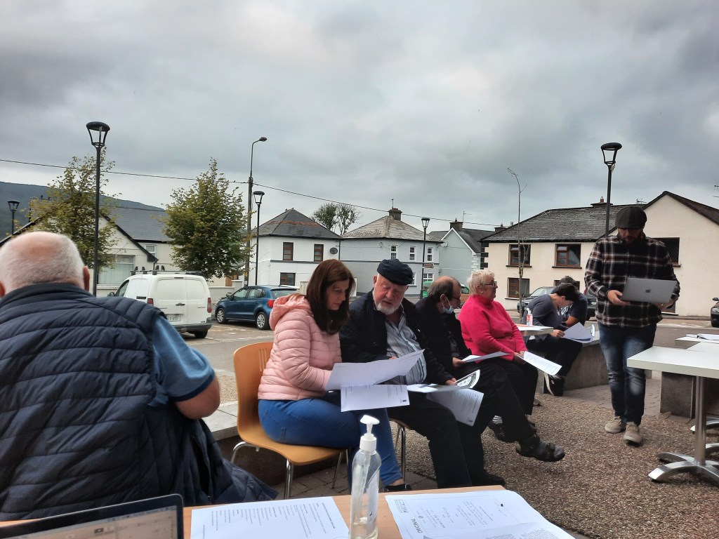 In order to tap into some of this local knowledge and expertise we held at Memories Event at Kilcommon as part of the project on 2 September 2021. After spending the afternoon in the picturesque landscape retracing some of the movements of the I.R.A.’s Hill Section during the attack on Kilcommon Barracks, we returned to the village for the community talk. It was held at Áras Chill Chuímín, the village’s community centre, which the parish priest kindly made available to us. Due to Covid-19 restrictions, the talk had to be held outdoors, but luckily the weather held, and a good number of the community were able to join us.