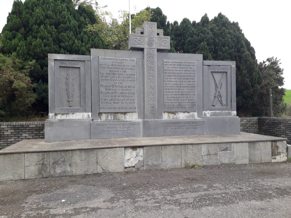One of the most striking aspects of the Crossbarry landscape is the survival of contemporary farm buildings associated with the Beasley and Harrold farms to the immediate east of this lane. They fronted the road at the very heart of the ambush site. It was in and around these farms that IRA volunteers under the likes of John Lordan and Mick Crowley engaged the British lorries that had been moving from west to east along the road. It was also in this area that one of the most famous acts of the War of Independence in Cork played out, when IRA volunteer Flor Begley, positioned in the Harrold farmyard, began to play stirring tunes on his pipes as the engagement commenced.