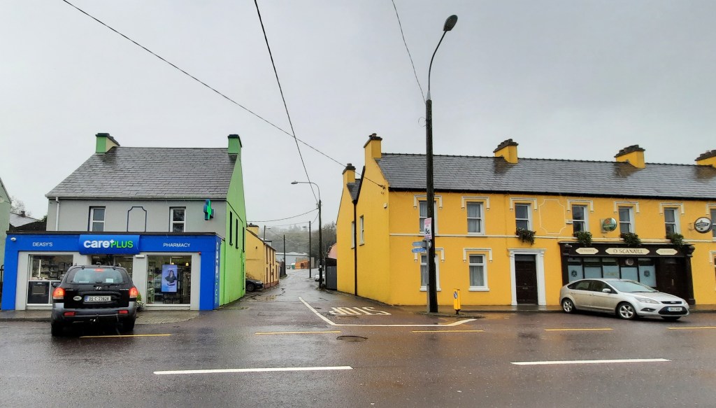 The pub Hutton refers to as ‘Creedon’s’ still stands on the eastern end of the village on the north side of the N22. This part of the village is on higher ground that overlooks the Ballingeary Road and the River Sullane, so Hutton’s account is plausible but modern housing and vegetation now block that view.