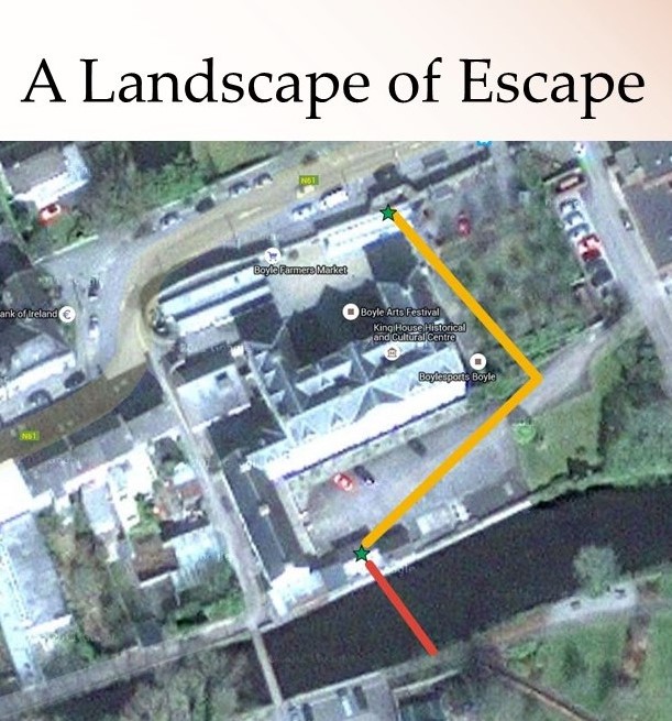Using messages smuggled out via an altar boy, an escape from the Barracks was planned, the first of two successful efforts from Boyle. Each morning the prisoners were taken in groups from the rifle range and across the barrack square to a washhouse overlooking the Boyle River. A map of a proposed washhouse from the 19th century is also available on the Irish Military Archives site, and is marked on the 1919 map.