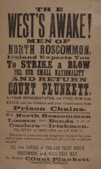The local courthouse was the scene of both the Irish Party’s convention and the count which returned Sinn Fein’s Count Plunkett. In the courthouse on the night prior to the ballots being counted, a guard of police was apparently stationed on one side of the unopened boxes, with a detachment of volunteers staring back at them from the other side.